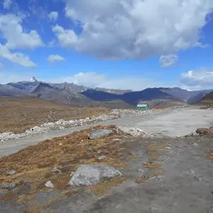 High-altitude mountain pass with stunning snow views and crystal lakes.
