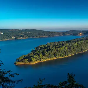A scenic lake ideal for boating, kayaking, and peaceful sunset views.
